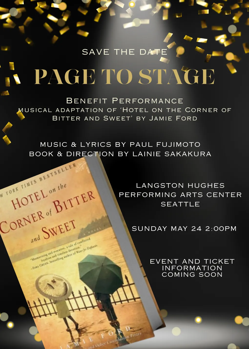 Save the date for a benefit performance of the musical adaptation of Hotel on the Corner of Bitter and Sweet by Jamie Ford.